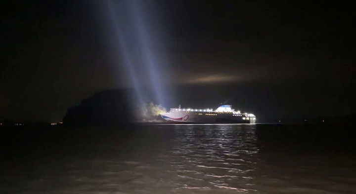 [서울=뉴시스] 19일 저녁 8시 16분 경 전남 신안군 해상에서 승객 260여명이 탑승한 제주발 목포행 여객선 퀸제누비아호가 돌섬 충돌로 좌초돼 해경이 구조 작업을 펼치고 있다. (사진=목포해경 제공) 2025.11.19. [email protected] *재판매 및 DB 금지