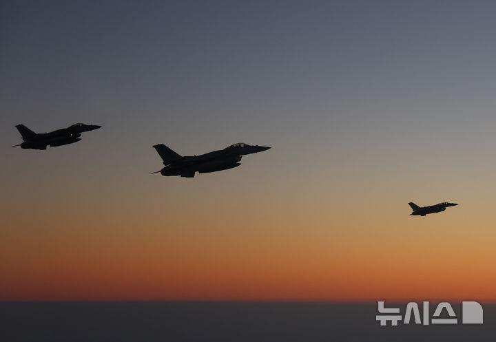 [아부다비=뉴시스] 최동준 기자 = 아랍에미리트(UAE) 국빈 방문 일정을 마친 이재명 대통령과 김혜경 여사가 탑승한 공군 1호기가 19일(현지 시간) UAE 공군 전투기의 호위 비행을 받으며 이집트로 향하고 있다. 2025.11.20. [email protected]