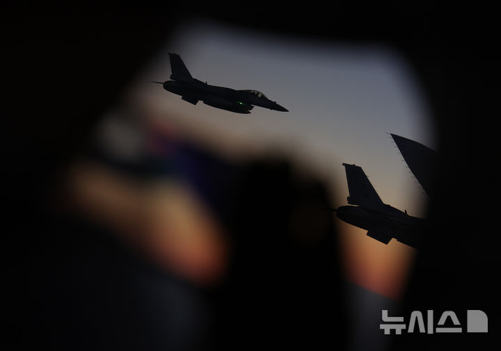 [아부다비=뉴시스] 최동준 기자 = 아랍에미리트(UAE) 국빈 방문 일정을 마친 이재명 대통령과 김혜경 여사가 탑승한 공군 1호기가 19일(현지 시간) UAE 공군 전투기의 호위 비행을 받으며 이집트로 향하고 있다. 2025.11.20. [email protected]