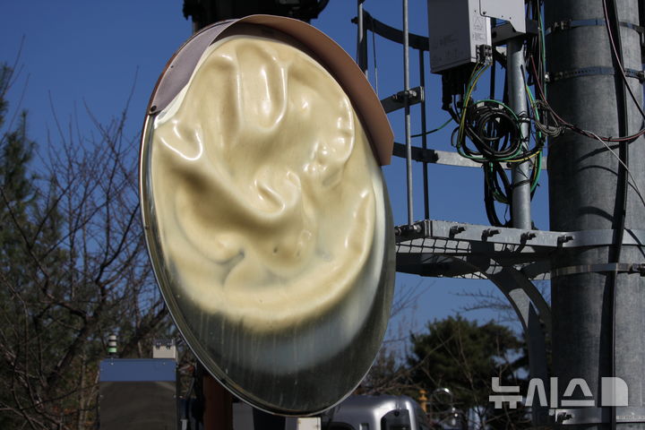 [천안=뉴시스] 최영민 기자=21일 충남 천안시 풍세면 이랜드패션 물류센터 화재 현장에서 합동 현장감식이 진행 중인 가운데 화재 당시 열기로 녹아내린 것으로 추정되는 반사경이 당시의 상황을 말해주고 있다. 2025.11.21 [email protected]