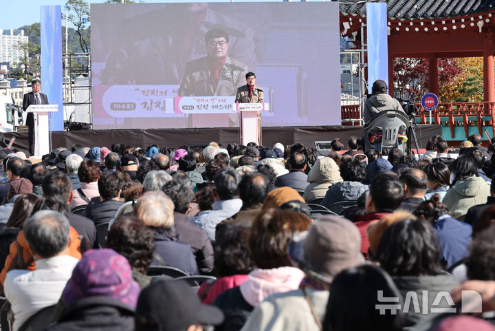 [삼척=뉴시스] 홍춘봉 기자 = 21일 강원 삼척시 임원항 일원에서 삼척시공동체종합지원센터, 임원횟집상가번영회 주관으로 임원항 수산물 소비촉진 행사에 참석한 박상수 삼척시장이 인사말을 하고 있다.(사진=삼척시 제공)[email protected]