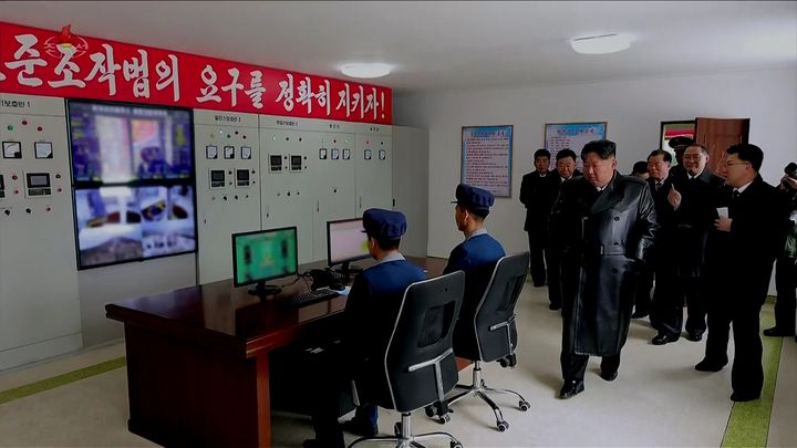 [서울=뉴시스] 김정은 북한 국무위원장이 지난 20일 강원도 회양군민발전소 준공식에 참석했다고 조선중앙TV가 21일 보도했다. (사진=조선중앙TV 캡처) 2025.11.21. [email protected] *재판매 및 DB 금지