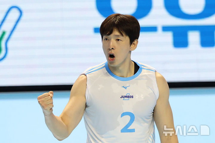[인천=뉴시스] 권창회 기자 = 21일 오후 인천 계양구 인천계양체육관에서 열린 2025-26V리그 남자부 2라운드 대한항공 대 OK저축은행 경기, 대한항공 한선수가 기뻐하고 있다. 한선수는 오늘 경기로 V리그 역대 최초로 2만 세트 달성에 성공했다. 2025.11.21. [email protected]