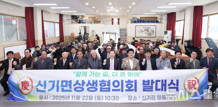 [삼척=뉴시스] 홍춘봉 기자 = 지난 22일 강원 삼척시 신기리 마을회관에서 박상수 삼척시장, 권정복 시의장, 이철규 국회의원을 비롯한 기관단체장, 주민 등이 참석한 가운데 신기면 노인회 및 이장단으로 구성된 ‘신기면 상생협의회(회장 김무길) 발대식’을 갖고 있다.(사진=삼척시 제공) [email protected]