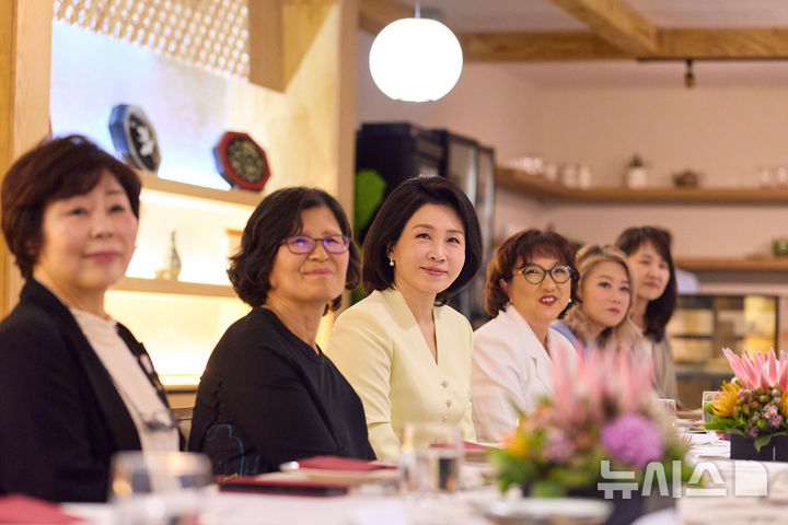 [요하네스버그=뉴시스] 최동준 기자 = 이재명 대통령과 함께 G20 정상회의 계기 남아프리카공화국을 방문 중인 김혜경 여사가 22일(현지 시간) 요하네스버그 소재 한식당에서 사회공헌과 문화교류 활동을 이어온 한인 여성들과 오찬 간담회를 하고 있다. (공동취재) 2025.11.23. [email protected]