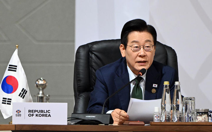 [요하네스버그=뉴시스] 최동준 기자 = 이재명 대통령이 23일(현지 시간) 남아프리카공화국 요하네스버그 엑스포 센터에서 열린 G20 정상회의 제3세션에서 발언하고 있다. (사진=G20 조직위원회 제공) 2025.11.23. [email protected] *재판매 및 DB 금지