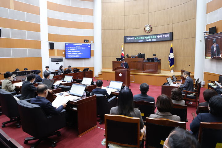 [보은=뉴시스] 최재형 충북 보은군수가 24일 보은군의회 본회의장에서 2026년도 당초예산안을 설명하고 있다. 최 군수는 4423억원 규모 예산안을 편성해 군의회에 제출했다. 최 군수는 내년도 세출예산은 민생 지원을 최우선에 두고, 미래 도약을 위한 체질 개선에 중점을 뒀다고 강조했다. (사진=보은군 제공) 2025.11.24. [email protected]
