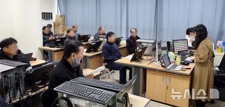 [인천=뉴시스] 전진환 기자 = 고령 운전자로 인한 교통사고가 잇달아 발생하고 있는 가운데 25일 오전 인천 남동구 도로교통공단 인천운전면허시험장에서 고령운전자들이 교통안전교육을 받기 위해 교육장에 자리하고 있다. 2025.11.25. [email protected]