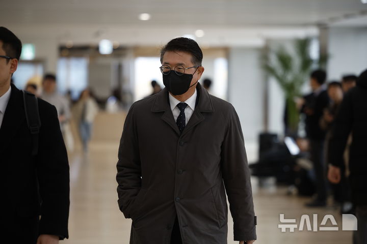 [서울=뉴시스] 정병혁 기자 = 장상윤 전 교육부 차관이 25일 서울 종로구 KT광화문빌딩 웨스트에 마련된 김건희 여사 관련 의혹을 수사하는 민중기 특별검사 사무실에 출석하고 있다. 2025.11.25. [email protected]