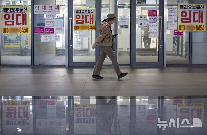 [서울=뉴시스] 김근수 기자 = 26일 서울 시내의 한 부동산 앞에 임대 안내문이 붙어 있다.