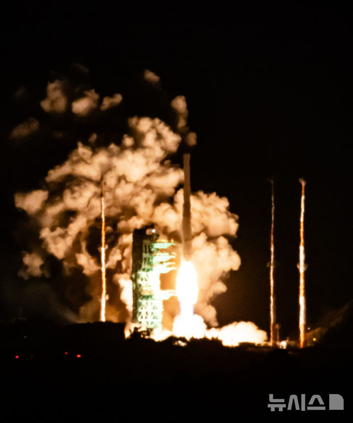[여수=뉴시스] 황준선 기자 = 한국형 발사체 누리호가 27일 새벽 전남 고흥군 나로우주센터에서 발사되고 있다.