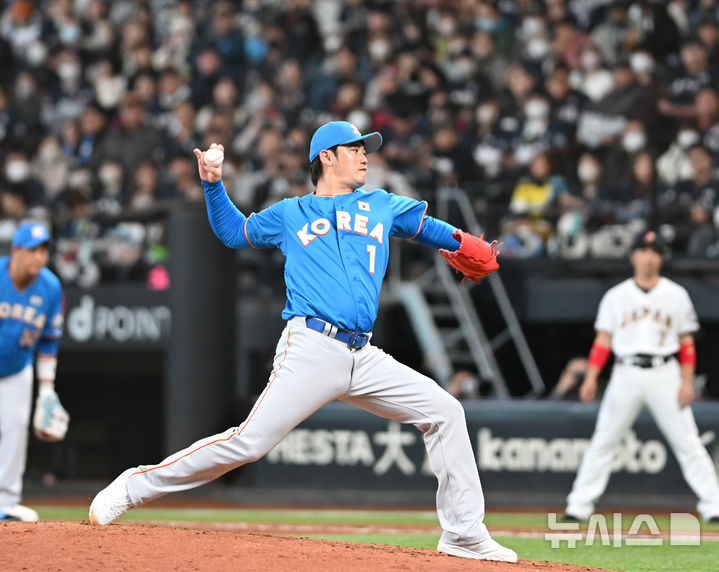 [키타히로시마=뉴시스] 사진공동취재단 = 30일 오후(현지 시간) 일본 홋카이도 키타히로시마시 에스콘필드 홋카이도에서 열린 '한일 드림 플레이어즈 게임'에서 손승락이 공을 던지고 있다.