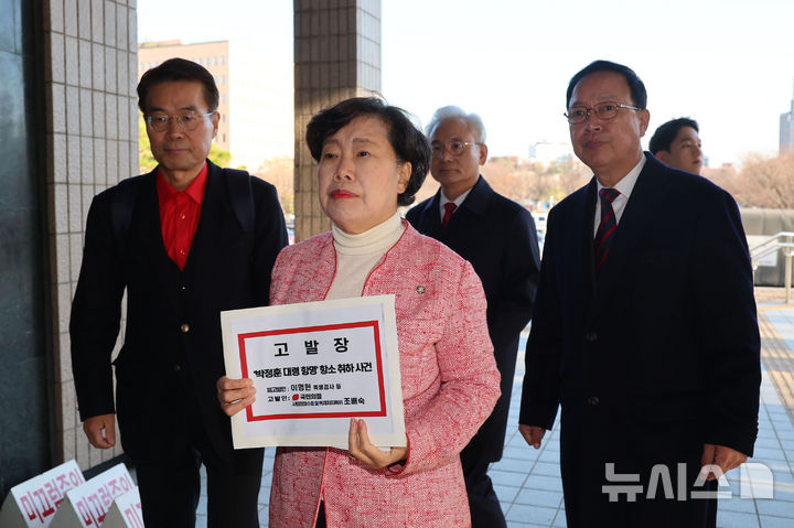[과천=뉴시스] 권창회 기자 = 조배숙 국민의힘 사법정의수호 및 독재저지 특위 위원장이 1일 오전 경기 과천시 정부과천청사 민원실에서 '박정훈 대령 항명' 항소 취하 사건 관련해 이명현 해병특별검사 등을 고위공직자범죄수사처에 고발하고 있다. 2025.12.01. [email protected]