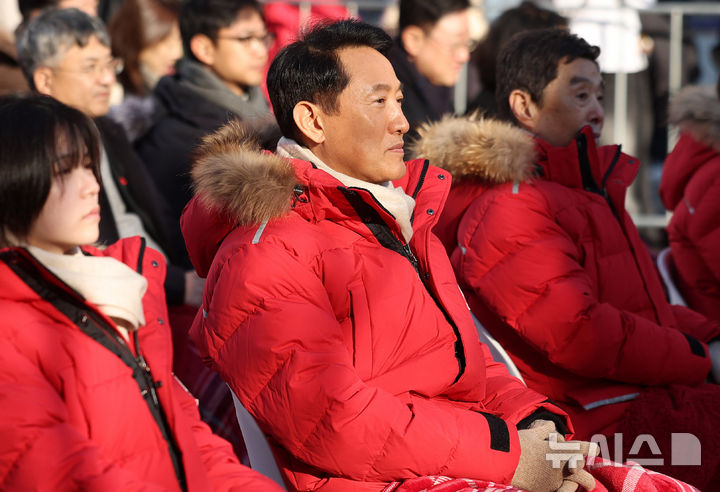 [서울=뉴시스] 추상철 기자 = 오세훈 서울시장이 1일 오후 서울 종로구 광화문광장에서 열린 사랑의 열매 '희망2026나눔캠페인' 출범식 및 사랑의온도탑 점등식에 참석해 있다.