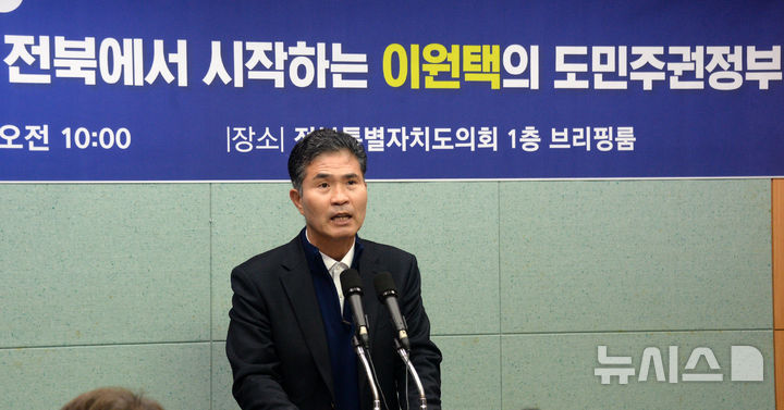 [전주=뉴시스] 김얼 기자 = 이원택 더불어민주당(김제) 국회의원이 2일 전북 전주시 전북특별자치도의회 기자회견장에서 '12.3 비상계엄 선포 1주기' 기자회견을 열고 질의에 답변하고 있다. 2025.12.02. [email protected]