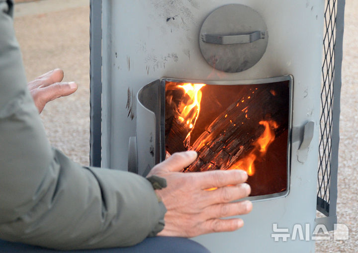 [전주=뉴시스] 김얼 기자 = 전북 전주시의 최저기온이 영하 4도를 기록하며 본격적인 겨울 날씨가 찾아온 3일 전주남부시장을 찾은 시민들이 화목난로를 쬐며 추위를 녹이고 있다. 2025.12.03. [email protected]