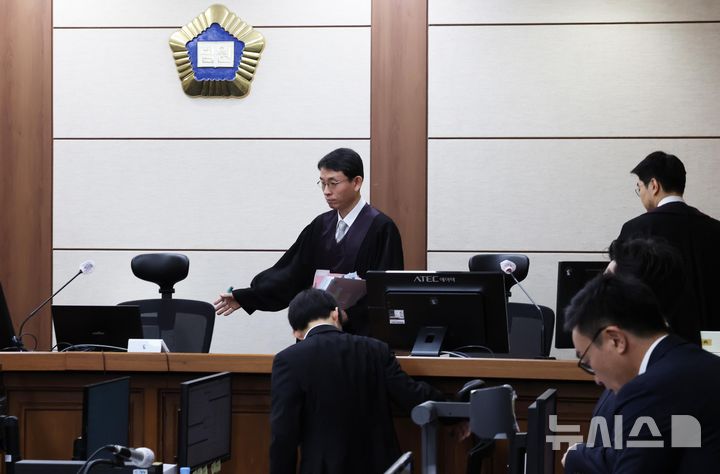 [서울=뉴시스] 사진공동취재단 = 우인성 부장판사가 3일 서울 서초구 서울중앙지방법원에서 열린 주가조작과 통일교 청탁 등의 혐의를 받는 김건희 씨의 결심공판에 참석하고 있다. 2025.12.03. [email protected]