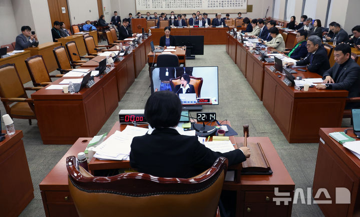 [서울=뉴시스] 김금보 기자 = 내란전담재판부를 설치하는 내용을 담은 법안이 안건조정위원회를 거쳐 3일 오후 서울 여의도 국회에서 열린 법제사법위원회 전체회의에서 더불어민주다 주도로 통과되고 있다. 2025.12.03. [email protected]