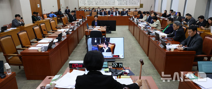 [서울=뉴시스] 김금보 기자 = 내란전담재판부를 설치하는 내용을 담은 법안이 안건조정위원회를 거쳐 3일 오후 서울 여의도 국회에서 열린 법제사법위원회 전체회의에서 더불어민주다 주도로 통과되고 있다. 2025.12.03. [email protected]