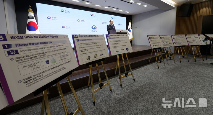[서울=뉴시스] 홍효식 기자 = 이명구 관세청장이 5일 서울 강남구 서울세관에서 마약단속 국제공조 추진현황 및 관세청 마약단속 종합대책 브리핑을 하고 있다. 2025.12.05. [email protected]