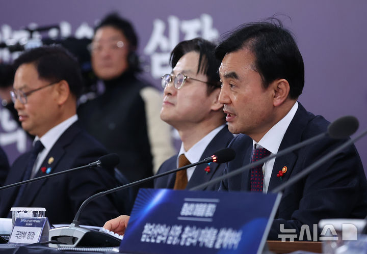 [천안=뉴시스] 고범준 기자 = 안규백 국방부 장관이 5일 충남 천안시 한국기술교육대학교에서 열린 '충남의 마음을 듣다' 타운홀미팅에서 발언하고 있다. (대통령실통신사진기자단) 2025.12.05. [email protected]