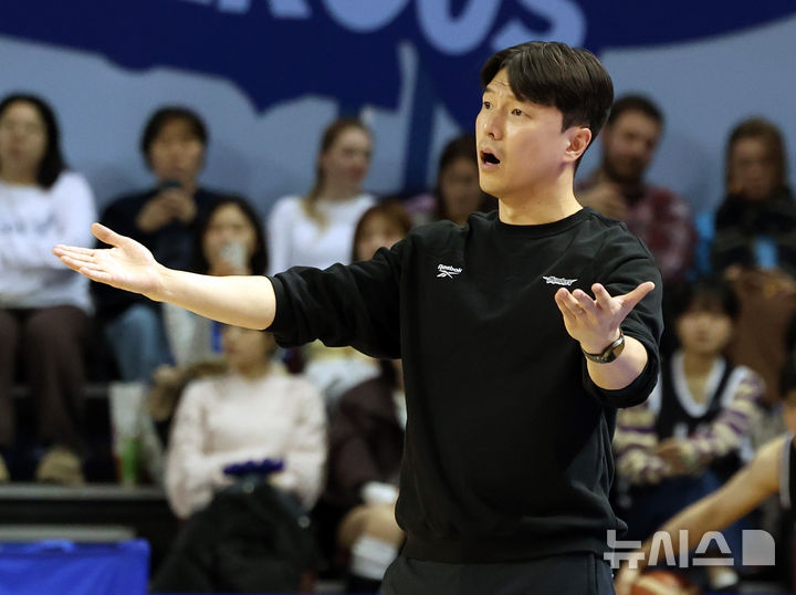 [서울=뉴시스] 이영환 기자 = 5일 오후 서울 송파구 잠실실내체육관에서 열린 2025-2026 KBL 서울 삼성과 수원 KT의 경기, 1쿼터 삼성 김효범 감독이 심판에게 어필하고 있다. 2025.12.05. [email protected]