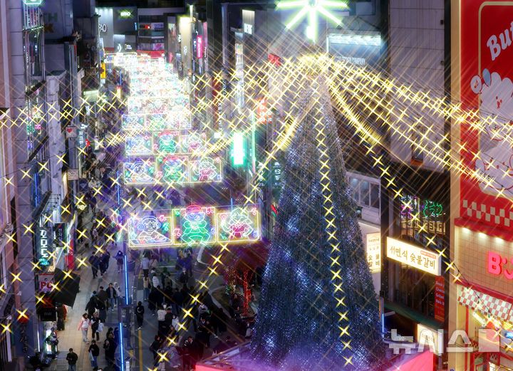 [부산=뉴시스] 하경민 기자 = '2025 광복로 겨울빛 트리축제'가 열린 6일 부산 중구 광복로 일대에 대형 트리와 빛 조형물 등이 화려하게 불을 밝히고 있다.