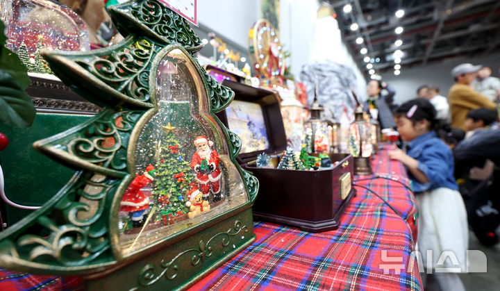 [대구=뉴시스] 이무열 기자 = 7일 대구 북구 엑스코에서 열린 ‘2025 대구 크리스마스 페어’를 찾은 한 어린이가 크리스마스 장식 소품을 살펴보고 있다. 2025.12.07. [email protected]