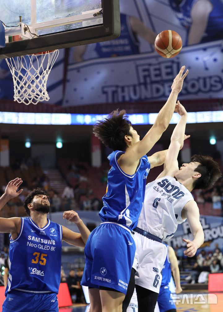 [서울=뉴시스] 황준선 기자 = 7일 서울 송파구 잠실실내체육관에서 열린 2025~2026시즌 LG전자 프로농구 정규리그 고양 소노 스카이거너스와 서울 삼성 썬더스의 경기, 소노 이정현이 슛 하고 있다. 2025.12.07. [email protected]