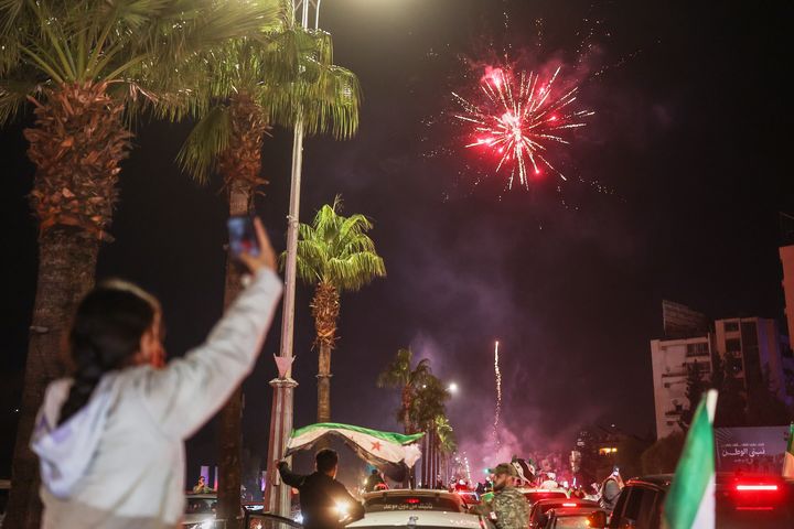 [다마스쿠스=AP/뉴시스] 8일(현지 시간) 시리아 다마스쿠스에서 시민들이 바샤르 알아사드 정권 축출 1주년을 축하하는 불꽃놀이를 즐기고 있다. 시리아 정권은 2024년 12월 8일, 반군 연합이 수도 다마스쿠스를 점령하면서 독재의 막을 내렸다. 2025.12.08.