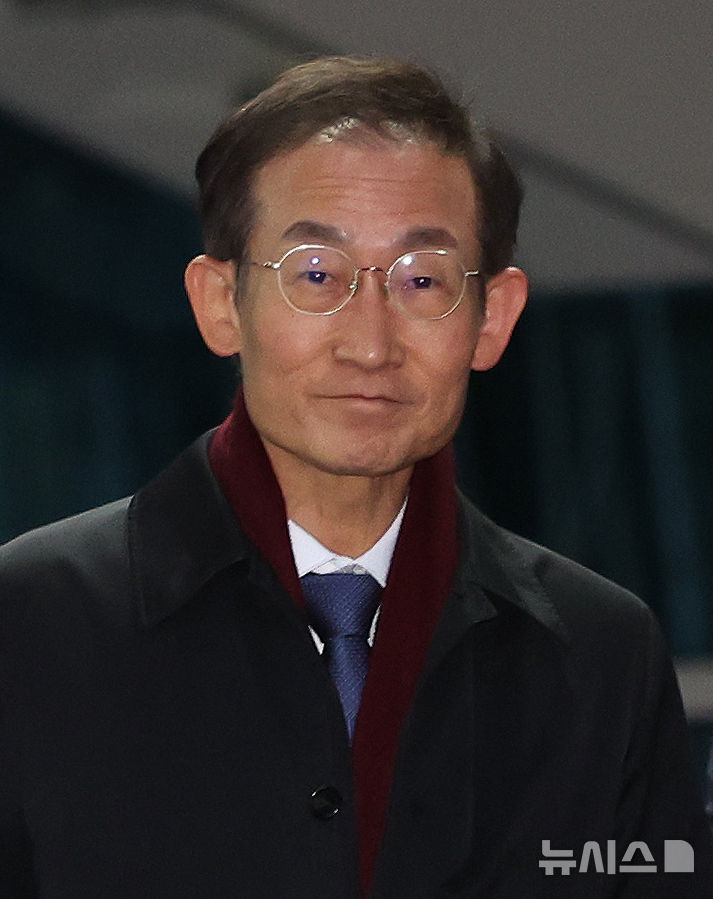 [서울=뉴시스] 조성우 기자 = 김호철 감사원장 후보자가 8일 서울 종로구 금융감독원 연수원에 마련된 인사청문회 준비 사무실에서 퇴근하고 있다. 2025.12.08. [email protected]