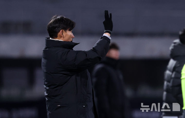 [수원=뉴시스] 이영환 기자 = 8일 오후 수원 장안구 수원종합운동장에서 열린 K리그1 수원FC와 K리그2 부천FC의 승강 플레이오프(PO) 2차전 경기 후반전, 부천 이영민 감독이 작전 지시를 하고 있다. 2025.12.08. [email protected]