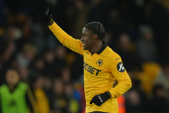 [울버햄프턴=AP/뉴시스] 울버햄프턴 원더러스의 장리크네르 벨가르드가 8일(현지 시간) 영국 울버햄프턴 몰리뉴 스타디움에서 열린 2025-26 프리미어리그 15라운드 맨체스터 유나이티드(맨유)와 경기 전반 추가 시간 만회 골을 넣고 세리머니하고 있다. 황희찬이 결장한 울버햄프턴은 1-4로 패하며 개막 이후 2무 13패로 최하위에 머물고 있다. 2025.12.09.