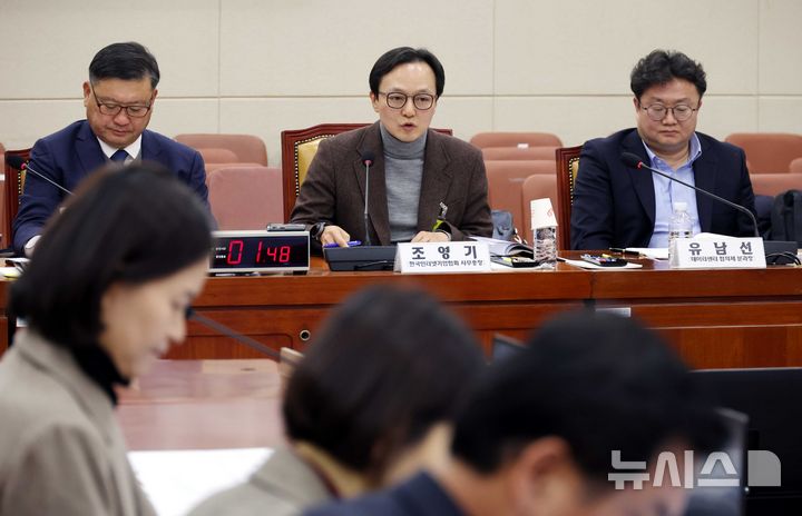 [서울=뉴시스] 조성봉 기자 = 조영기 한국인터넷기업협회 사무총장이 9일 오전 서울 여의도 국회 과학기술정보방송통신위원회에서 열린 AI제정법 관련 입법공청에서 발언을 하고 있다. 2025.12.09. [email protected]
