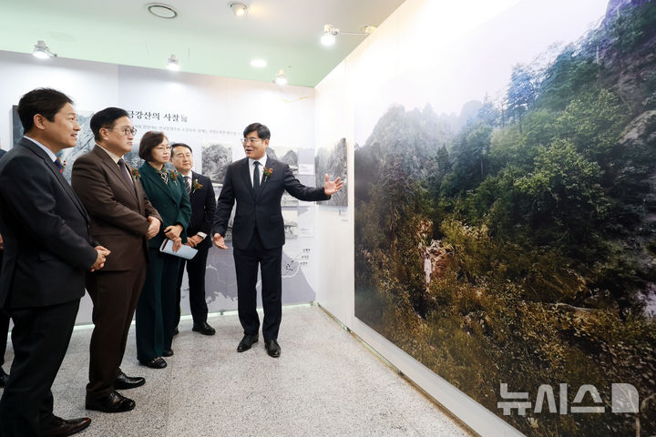 [서울=뉴시스] 고승민 기자 = 우원식 국회의장이 9일 서울 여의도 국회 의원회관에서 열린 '우리 식물주권 바로 세우기-우리식물의 잃어버린 기록을 찾아서' 전시회에서 사진들을 관람하고 있다. 2025.12.09. [email protected]