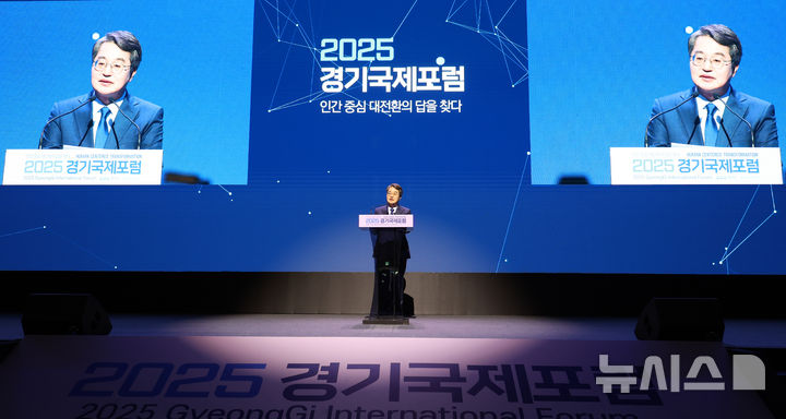 [고양=뉴시스] 전진환 기자 = 김동연 경기도지사가 10일 오전 경기도 고양시 킨텍스에서 열린 2025 경기국제포럼에서 개회사를 하고 있다. 2025.12.10. [email protected]