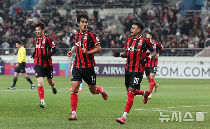 [서울=뉴시스] 김선웅 기자 = 10일 서울 마포구 서울월드컵경기장에서 열린 2025-2026시즌 아시아축구연맹(AFC) 챔피언스리그 엘리트(ACLE) 리그 스테이지 6차전 FC서울 vs 멜버른 시티 경기, FC서울 린가드가 골을 성공시킨 뒤 세레머니를 하고 있다. 2025.12.10. [email protected]