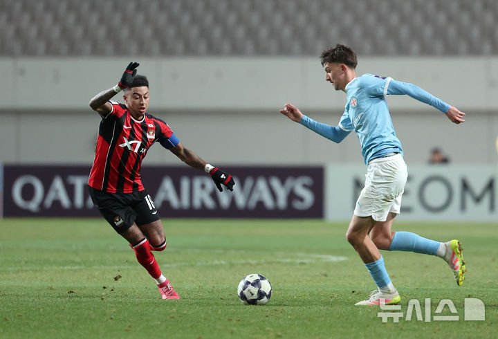 [서울=뉴시스] 김선웅 기자 = FC서울 린가드가 10일 서울 마포구 서울월드컵경기장에서 열린 2025-2026시즌 아시아축구연맹(AFC) 챔피언스리그 엘리트(ACLE) 리그 스테이지 6차전 FC서울 vs 멜버른 시티 경기 겸 서울 고별전에서 멜버른 선수와 볼다툼을 하고 있다. 2025.12.10. [email protected]