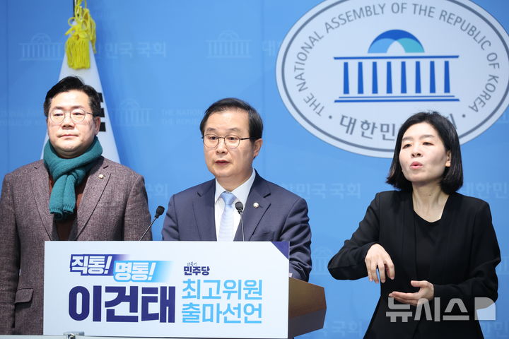 [서울=뉴시스] 조성봉 기자 = 이건태 더불어민주당 의원이 11일 오전 서울 여의도 국회 소통관에서 최고위원 보궐선거 선거 출마선언을 하고 있다.2025.12.11. [email protected]