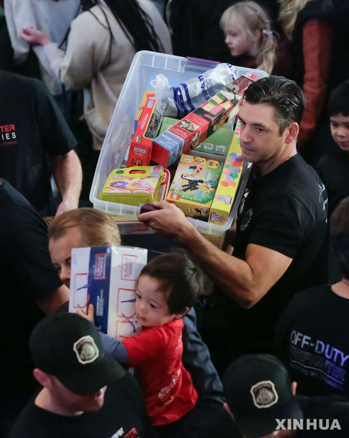 [밴쿠버=신화/뉴시스] 10일(현지 시간) 캐나다 브리티시컬럼비아주 밴쿠버의 캐나다 플레이스에서 열린 ‘팬 퍼시픽 크리스마스 위시 브랙패스트 2025’ 행사에서 시민들이 장난감을 기부하고 있다. 이날 20톤 넘게 모여진 장난감은 연말연시를 맞아 불우이웃 어린이들에게 전달된다. 2025.12.11.