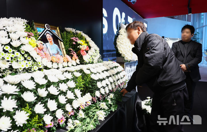 [서울=뉴시스] 황준선 기자 = 11일 오후 서울 중구 충무로 서울영화센터에 마련된 배우 고(故) 김지미 추모 공간을 찾은 시민들이 조문을 하고 있다. 2025.12.11. [email protected]
