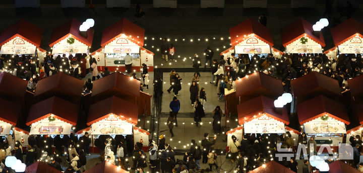 [서울=뉴시스] 박주성 기자 = 12일 오후 서울 광화문광장에서 열린 서울윈터페스타의 일환으로 마련된 광화문마켓에 시민들의 발걸음이 이어지고 있다. 2025.12.12. [email protected]