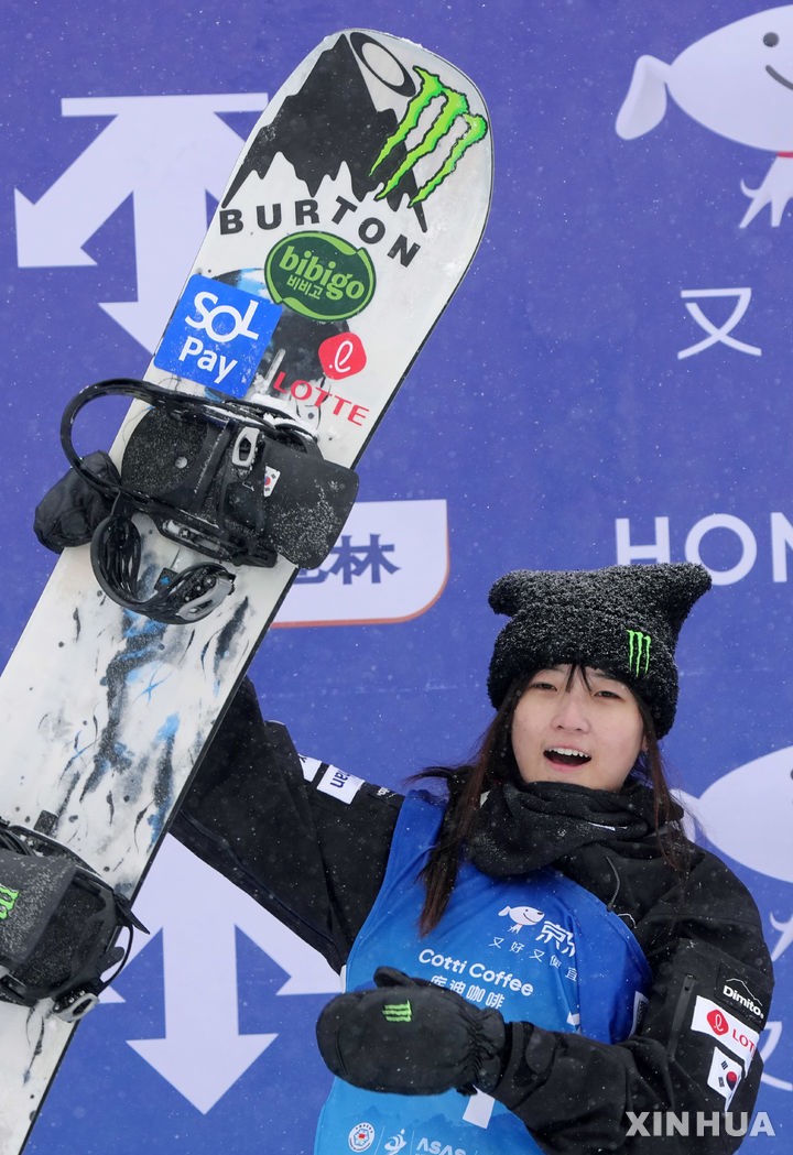 [장자커우시=신화/뉴시스] 스노보드 국가대표 최가온이 12일(현지 시간) 중국 허베이성 장자커우시에서 열린 2025~2026 FIS 스노보드 월드컵 여자 하프파이프에서 우승을 차지했다. 2025.12.13.