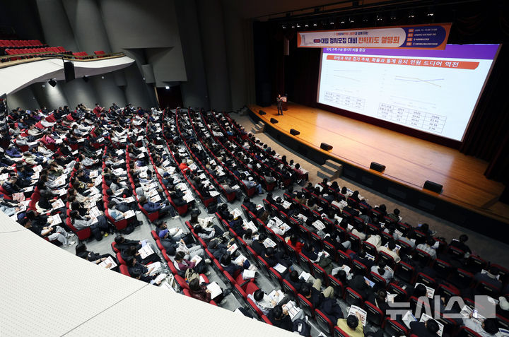 [서울=뉴시스] 김진아 기자 = 13일 서울 성북구 고려대학교 인촌기념관에서 열린 서울시교육청 교육연구정보원, 2026 대입 정시모집 대비 진학지도 설명회에서 학부모 등 참석자들이 자료를 살펴보고 있다. 2025.12.13. [email protected]