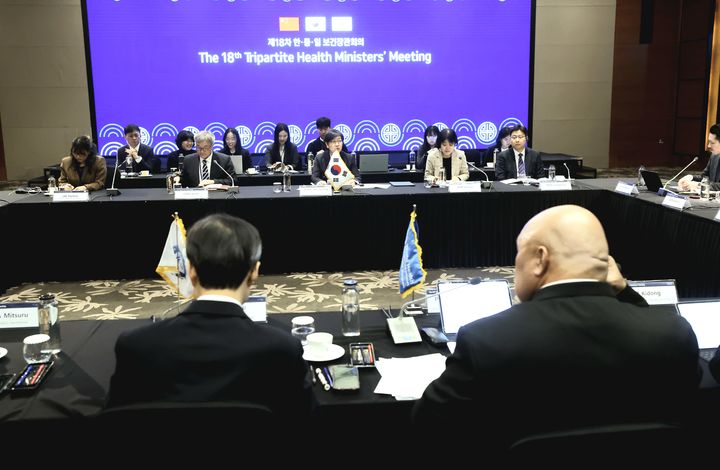 [서울=뉴시스] 홍효식 기자 = 정은경 보건복지부 장관이 14일 서울 영등포구 콘래드 서울 호텔에서 열린 제18차 한·중·일 보건장관회의에서 발언하고 있다. (사진=보건복지부 제공) 2025.12.14. [email protected] *재판매 및 DB 금지