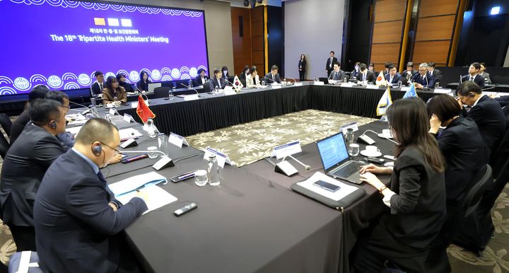 [서울=뉴시스] 홍효식 기자 = 정은경 보건복지부 장관이 14일 서울 영등포구 콘래드 서울 호텔에서 열린 제18차 한·중·일 보건장관회의에서 발언하고 있다. (사진=보건복지부 제공) 2025.12.14. [email protected] *재판매 및 DB 금지
