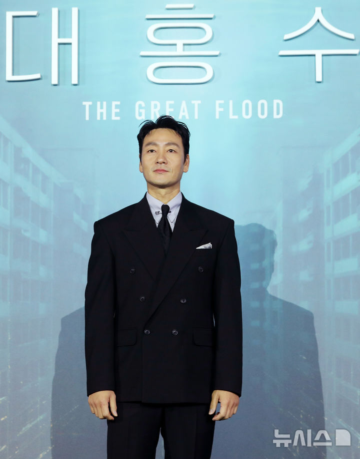 [서울=뉴시스] 김혜진 기자 = 배우 박해수가 16일 오전 서울 용산구 CGV용산아이파크몰에서 열린 넷플릭스 영화 '대홍수'(감독 김병우) 제작보고회에서 포즈를 취하고 있다. 2025.12.16. [email protected]