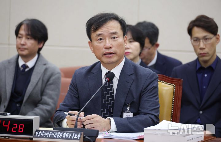 [서울=뉴시스] 조성봉 기자 = 김종철 방송미디어통신위원회 위원장 후보자가 16일 오후 서울 여의도 국회 과학기술정보방송통신위원회에서 열린 인사청문회에서 의원의 질의에 답변하고 있다. 2025.12.16. [email protected]