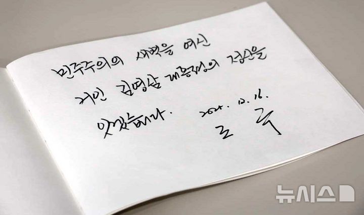 [서울=뉴시스] 조성봉 기자 = 조국 조국혁신당 대표가 16일 서울 동작구 김영삼민주센터를 방문해 방명록을 작성했다. (사진=조국혁신당 제공) 2025.12.16. [email protected]