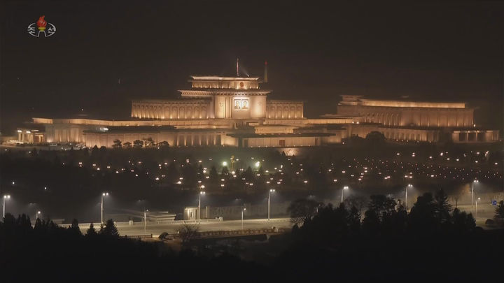 [서울=뉴시스] 북한 조선중앙TV는 17일 김정은 북한 국무위원장이 아버지인 김정일 국방위원장 14주기를 맞아 금수산태양궁전을 참배했다고 보도했다. (사진=조선중앙TV 캡쳐) 2025.12.17. [email protected] *재판매 및 DB 금지